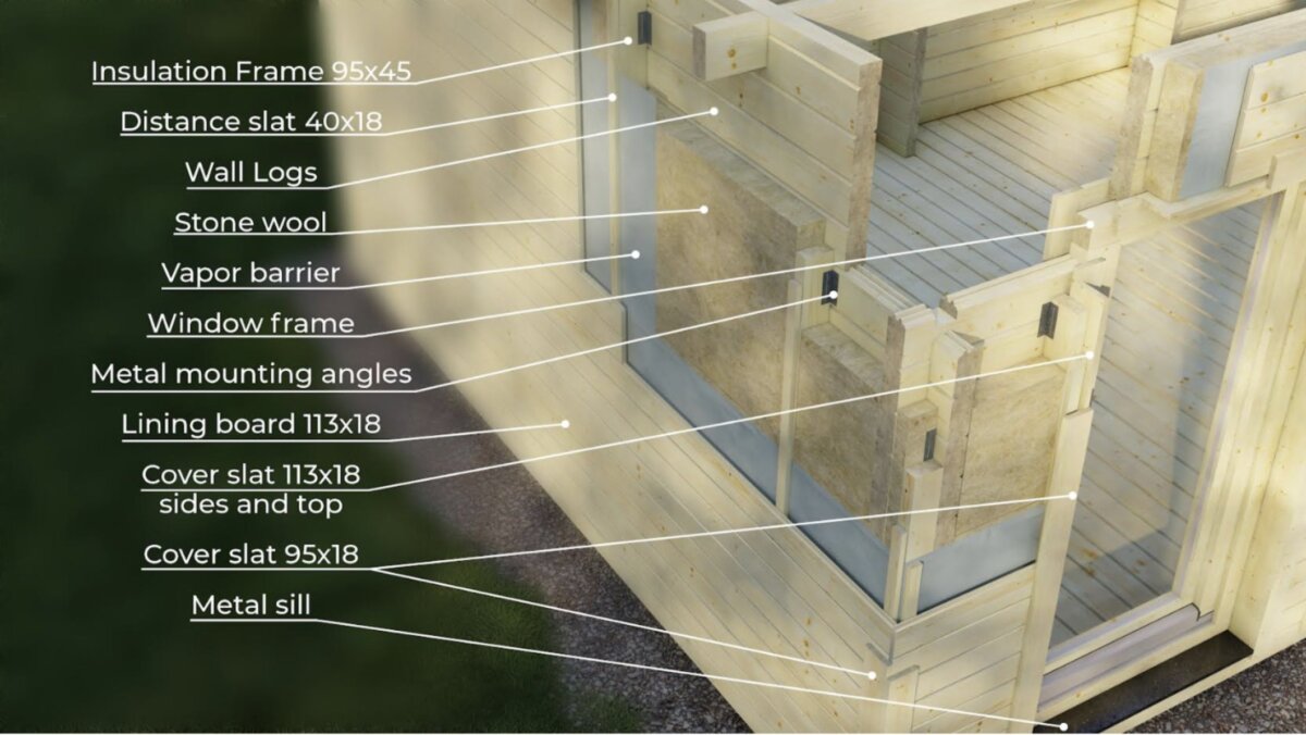 Eristyspakettimme sisältävät ovi- ja ikkunaeristeen, joka eristää ikkunoiden/ovien ja mökin hirsiseinien väliset tyhjät tilat siten, että ne sallivat hirsien luonnollisen liikkumisen. Tämä on erityisen tehokas kovaa tuulta ja sadetta vastaan.