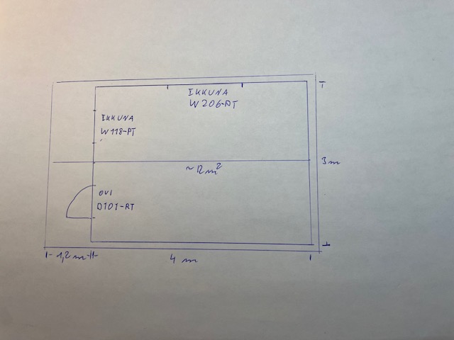 | Ulkomitat: | 4 x 3 m |